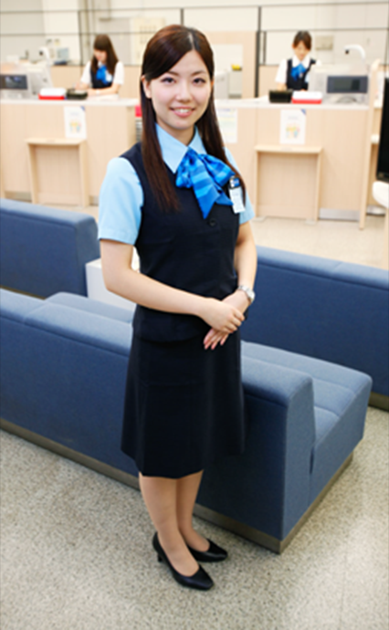母が銀行勤めをしていた経験があることから銀行員の仕事に興味をもち、この職業に就きました。現在はジョブローテーションを組んで行内の各係を回り、業務を覚えています。様々な角度から銀行業務の流れを見ることで、日々、この仕事の重要性を実感しています。私たちが暮らす社会を人の身体にたとえると、お金は血液のような存在で、社会全体を循環しています。そのように大切なお金を預かったり、貸し出したりすることで、経済活動を支えているのが銀行をはじめとする金融機関。社会にとってなくてはならない存在ですし、周辺地域の方々の生活と密接に関わり貢献できる、とてもやりがいのある仕事です。